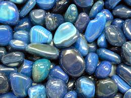 Bere koloreak urdina, kaltzita zuriz eta piritaz zipriztindua.
